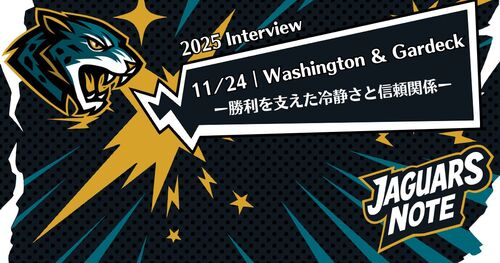 現地月曜日に、主力欠場が続く中でチームを支えるParker Washington、ARIとの古巣対決となったDennis Gardeckの2人がメディア対応を行いました。特にWashingtonがパントリターンの場面は自分もちょっと前のPHI戦で教えてもらってなければセーフティかと思っ…